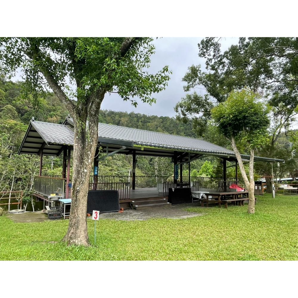 ◉ 3帳包區 (約 14m x 7.9m 木棧板),涼亭兩側備有洗手台、插座、木桌椅等使用。